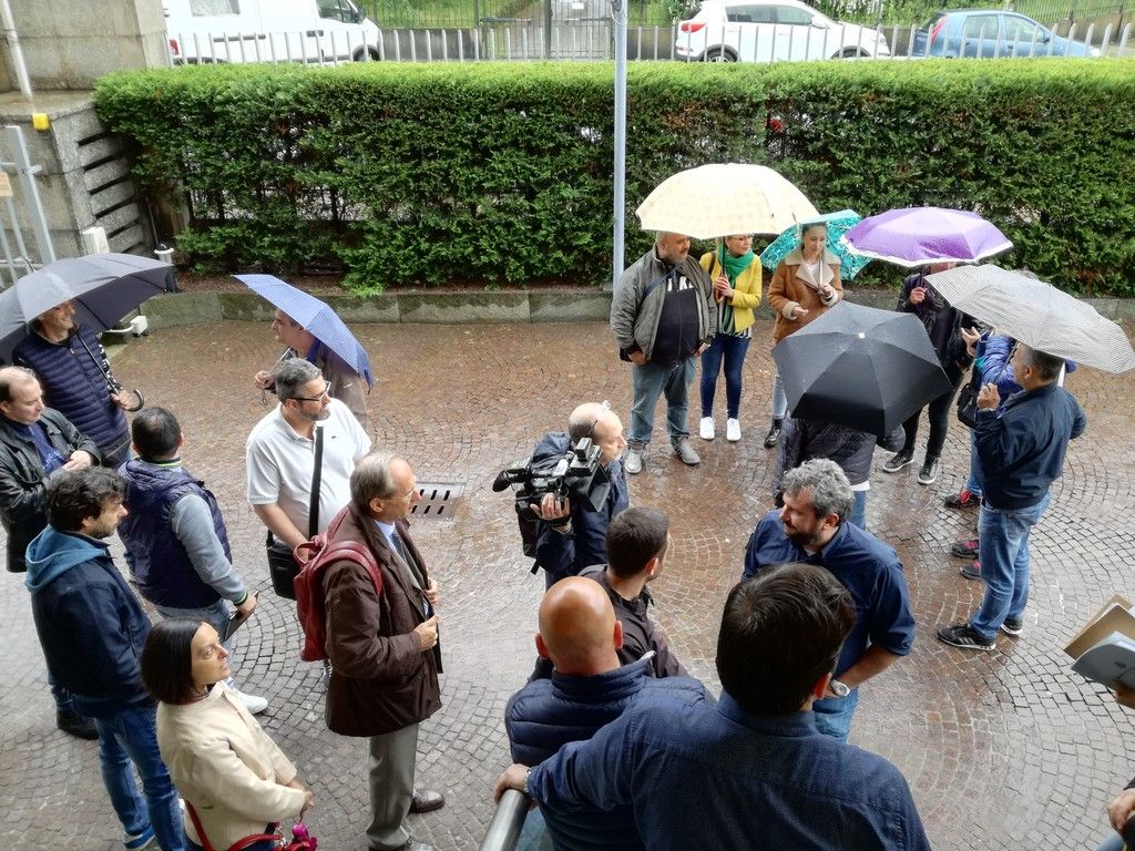 La pioggia battente, forse un po' di sconforto. Di certo fuori dall'unione industriale di Torino il numero di operai della Embraco è minore rispetto a quello cui si era abituati nelle prime battute della vertenza.
