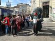 Intanto, mentre ai suoi fianchi sfila la normale vita universitaria, in tanti guardano e passano. Tanto però si fermano e lo abbracciano. Lui, da sotto la benda, sorride. Anche per le scolaresche in gita diventa un passaggio irrinunciabile. Passa anche una classe di bimbi delle elementari. Un bimbo legge il cartello di Alessandro e chiede alla maestra cosa sia "L'IV". La maestra prende tempo, ma promette "ve ne parlo in classe, più tardi".