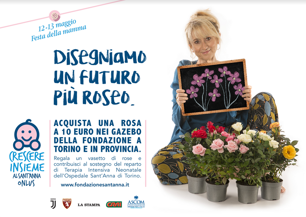 Tornano in piazza sabato 12 e domenica 13 le piante di rose per raccogliere fondi da destinare al Reparto di Neonatologia e terapia intensiva neonatale. Madrina, anche questa volta, Luciana Littizzetto. Appuntamenti anche a Rivoli e Moncalieri