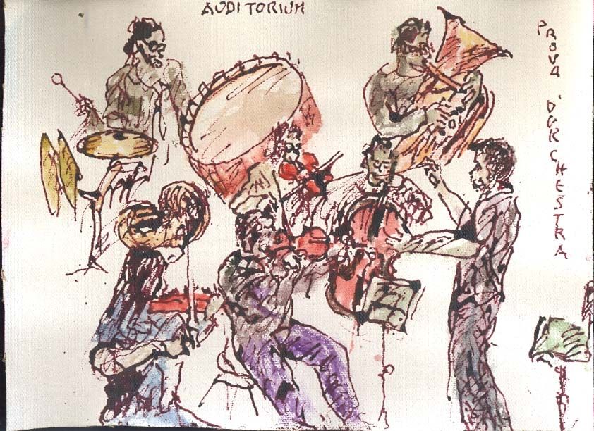 Tratto da Massimo Mila, I disegni dei concerti di Luigi Le Voci, Piccolo Regio di Torino, 1976. Da oggi, venerdì 11, a domenica 27 maggio, nel Foyer d'ingresso del Teatro Regio, saranno esposti alcuni dei dipinti creati da Luigi Le Voci ispirati al mondo della musica e realizzati principalmente a Torino e a Milano.
