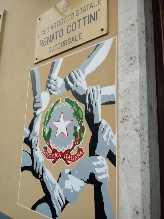 Diritti inviolabili, sicurezza e lavoro, solidarietà, pari possibilità per tutti. Sono questi i valori della Costituzione, da poco settantenne, che gli studenti del liceo artistico "Renato Cottini" hanno voluto riprodurre sui muri esterni della succursale, in via Don Grioli, a Santa Rita.