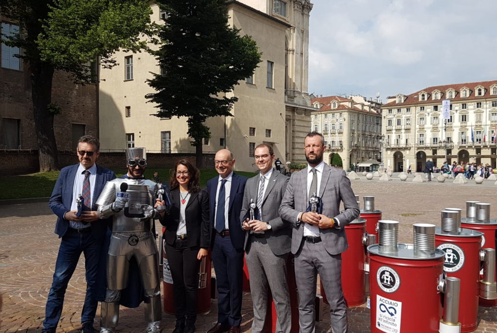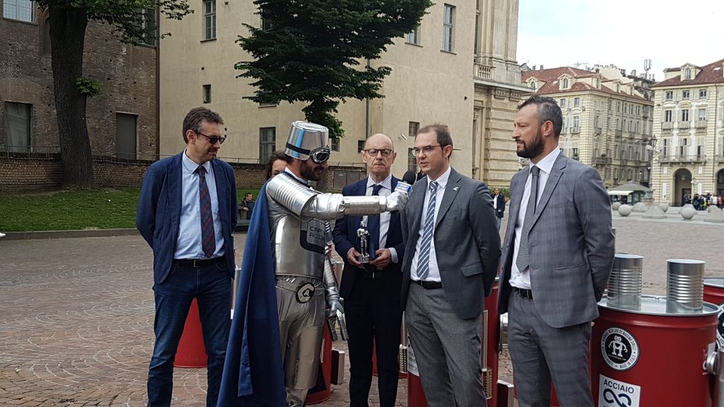 Fino a mercoledì 23 maggio in Piazza Castello, il supereroe Capitan Acciaio è a disposizione per aiutare i cittadini a scoprire i vantaggi della raccolta differenziata e il valore del riciclo dell’acciaio, il materiale più riciclato in Europa. Nel 2017 nel nostro Paese sono state avviate al riciclo 361.403 tonnellate di imballaggi in acciaio, un quantitativo sufficiente per realizzare ben 3.600 chilometri di binari ferroviari, in grado di collegare Bari e Mosca.