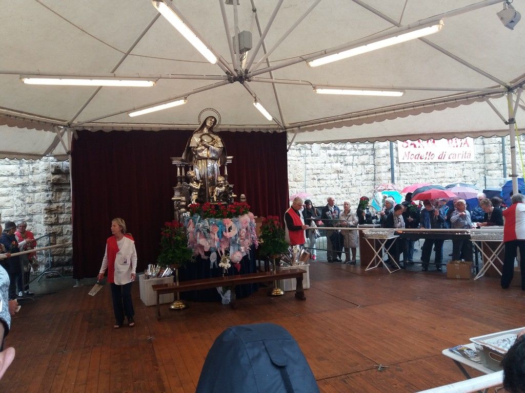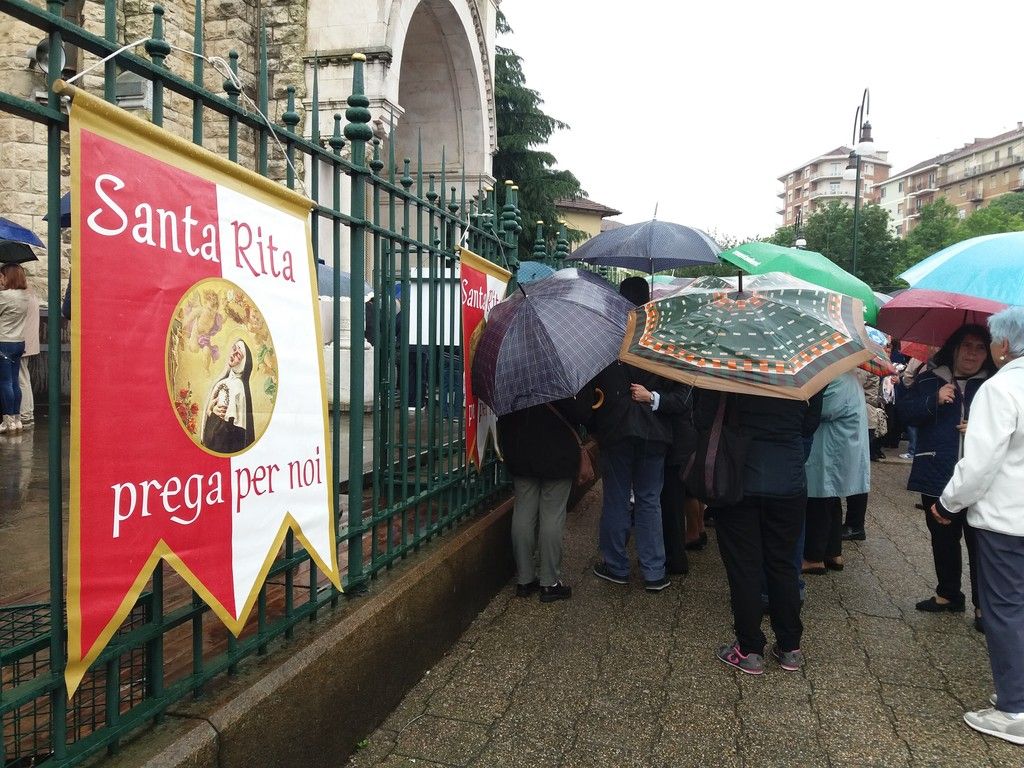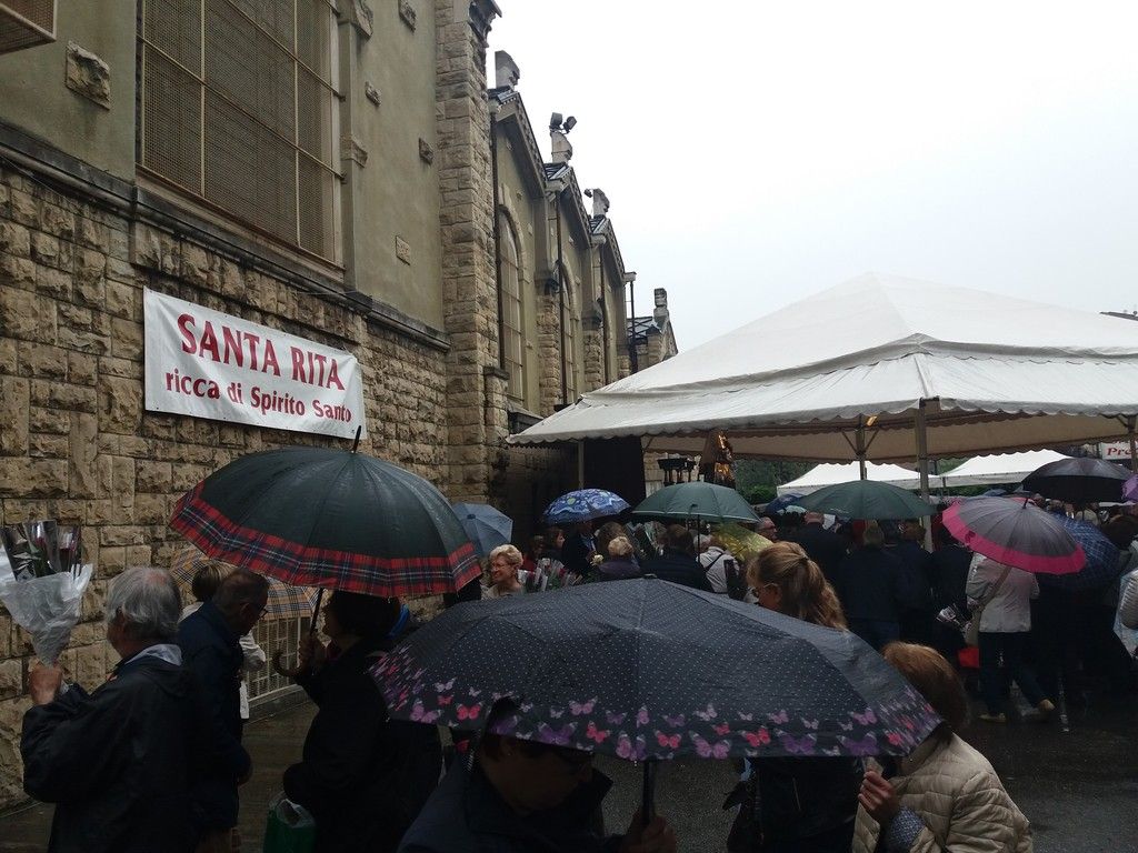 La pioggia innaffia le rose di Santa Rita, in centinaia sotto gli ombrelli in piazza (FOTO)