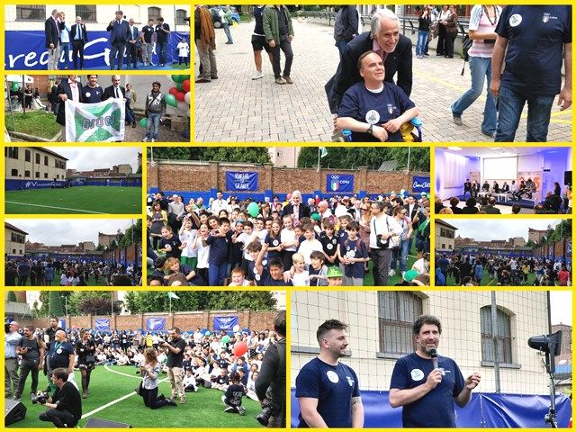 Grande festa alla scuola Cottolengo, in via San Pietro in Vincoli, per l’inaugurazione del nuovo campo da calcio gestito dell’associazione sportiva GiuCo ’97, il “ConiCotto”.