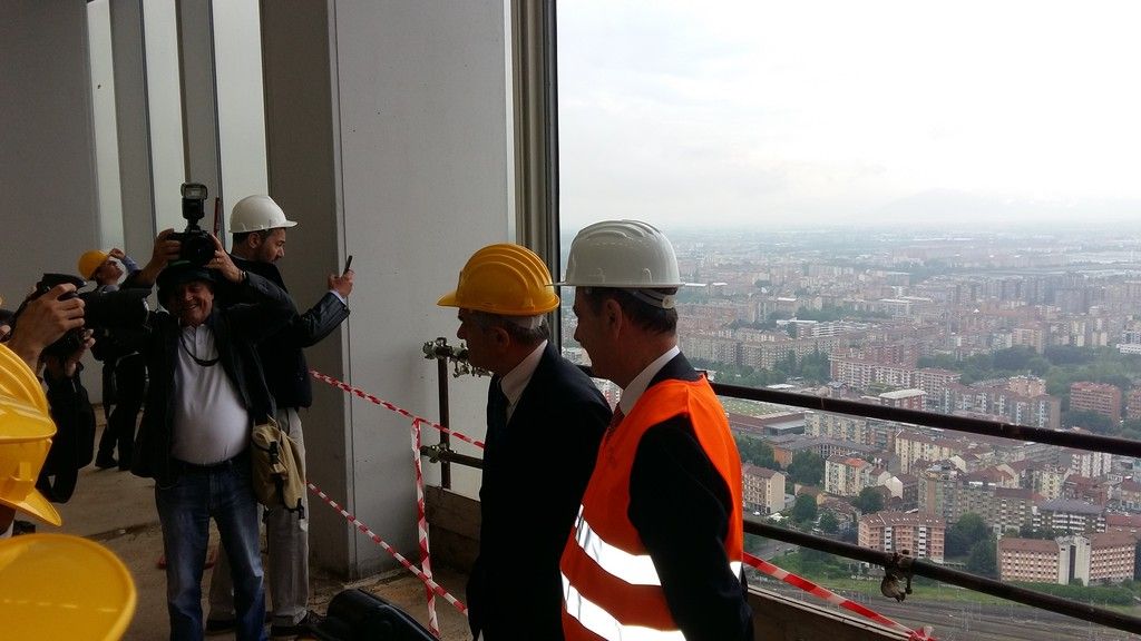 Chiamparino e Reschigna hanno visitato il 41esimo piano, per poi spostarsi all'ottavo, l'unico già allestito come verranno gli uffici in futuro: con la sala riunioni vetrata, le aree insonorizzate per i colloqui privati, le scrivanie e le zone relax. Reschigna ha annunciato che è stata assegnata la gara per i mobili e ha spiegato che all'ingresso del grattacielo (in via Nizza) ci saranno i tornelli. Gli ascensori saranno 12: non tutti porteranno dal primo al 41esimo piano, ma ci si muoverà per zone. Saranno però molto più veloci degli attuali, che ci mettono 1 minuto e 10 secondi per raggiungere la vetta.