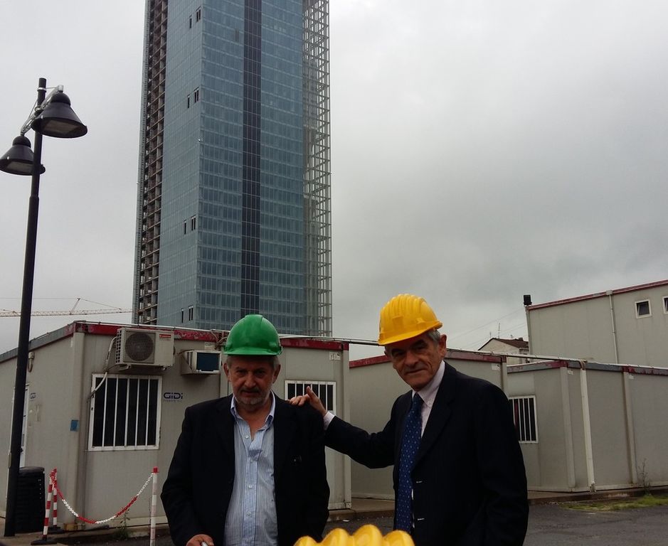 Sarà pronto soltanto nella primavera del 2019 il grattacielo che ospiterà i nuovi uffici della Regione Piemonte, in zona Lingotto proprio dietro all'Oval. Lo ha annunciato stamattina, dal 41esimo e ultimo piano della torre (più in alto ci sarà il giardino d'inverno), il presidente Sergio Chiamparino, che ha effettuato la visita in cantiere insieme al suo vice, Aldo Reschigna.