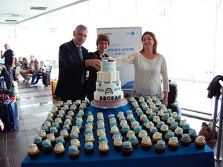 L’inaugurazione del nuovo volo è stata festeggiata anche con una scenografica torta decorata con motivi greci per tutti i passeggeri.