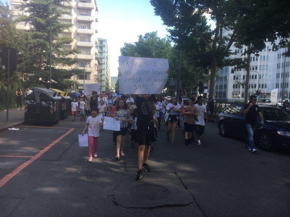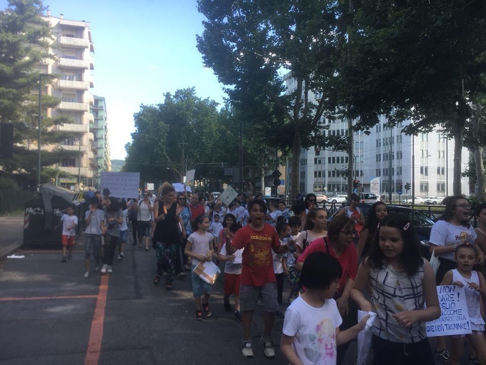 Proteste e corteo dei genitori in Barriera di Milano: “Non vogliamo spostare i nostri bambini alla scuola Benedetto Croce”