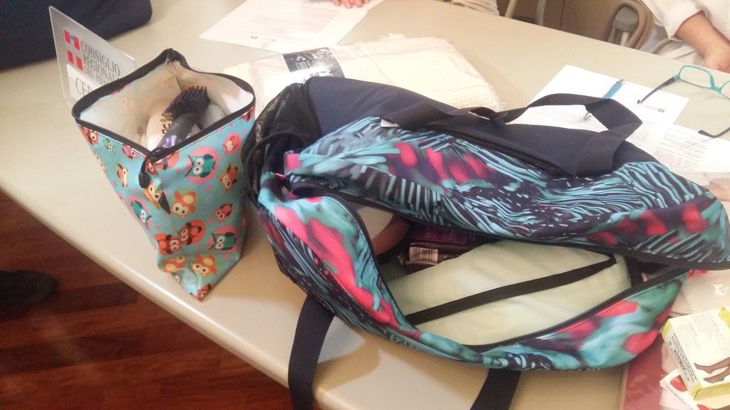Al momento, nel kit - che Moschetti definisce "di sopravvivenza" - ci sono generi di prima necessità: un pigiama, una canottiera, calze, slip, un paio di pantofole, un set di asciugamani, un accappatoio e una trousse con spazzolino e dentifricio, shampoo, sapone, bagnoschiuma, un pettine, creme, un deodorante.