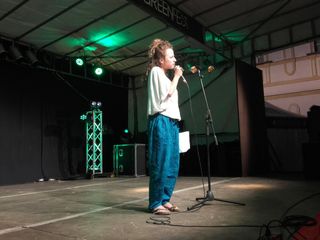 Il Poetry Slam è un tipo di spettacolo che vanta un pubblico affezionato in città. Un tipo di spettacolo che, però, questa volta ha provato a confrontarsi con spettatori nuovi e di passaggio, molti dei quali non conoscevano il meccanismo della sfida, e altrettanti probabilmente non erano neanche particolarmente appassionati di poesia. Famiglie, bambini, adolescenti e cani iperattivi. Insomma, una sfida da far tremare i polsi a questi poeti.