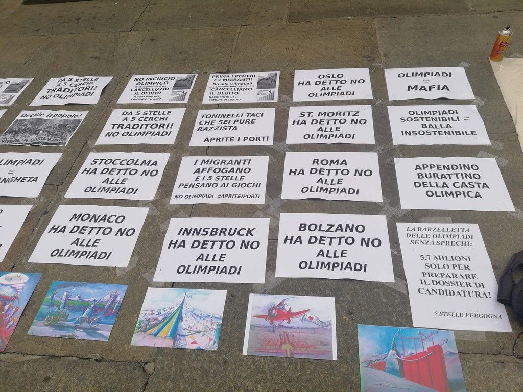 "Partecipate sabato a un incontro pubblico sul no alle Olimpiadi 2026 a Torino nell'ex villaggio olimpico al Moi". È questo il provocatorio invito lanciato ai consiglieri comunali del M5S dal Coordinamento No Olimpiadi, che questo pomeriggio ha protestato davanti al Comune di Torino in occasione dell'illustrazione del pre-dossier olimpico in Sala Rossa. La sindaca Chiara Appendino, alla vigilia della consegna del documento, ha voluto presentare alcuni dei punti essenziali.