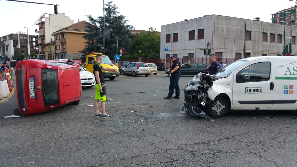 Brutto incidente poco dopo le ore 18 di oggi, venerdì 6 luglio, a Torino, in corso Grosseto all'incrocio con via Ala di Stura.
