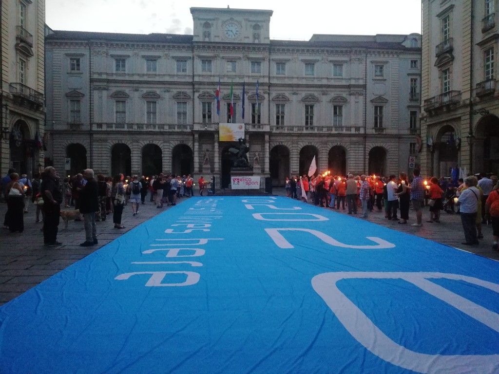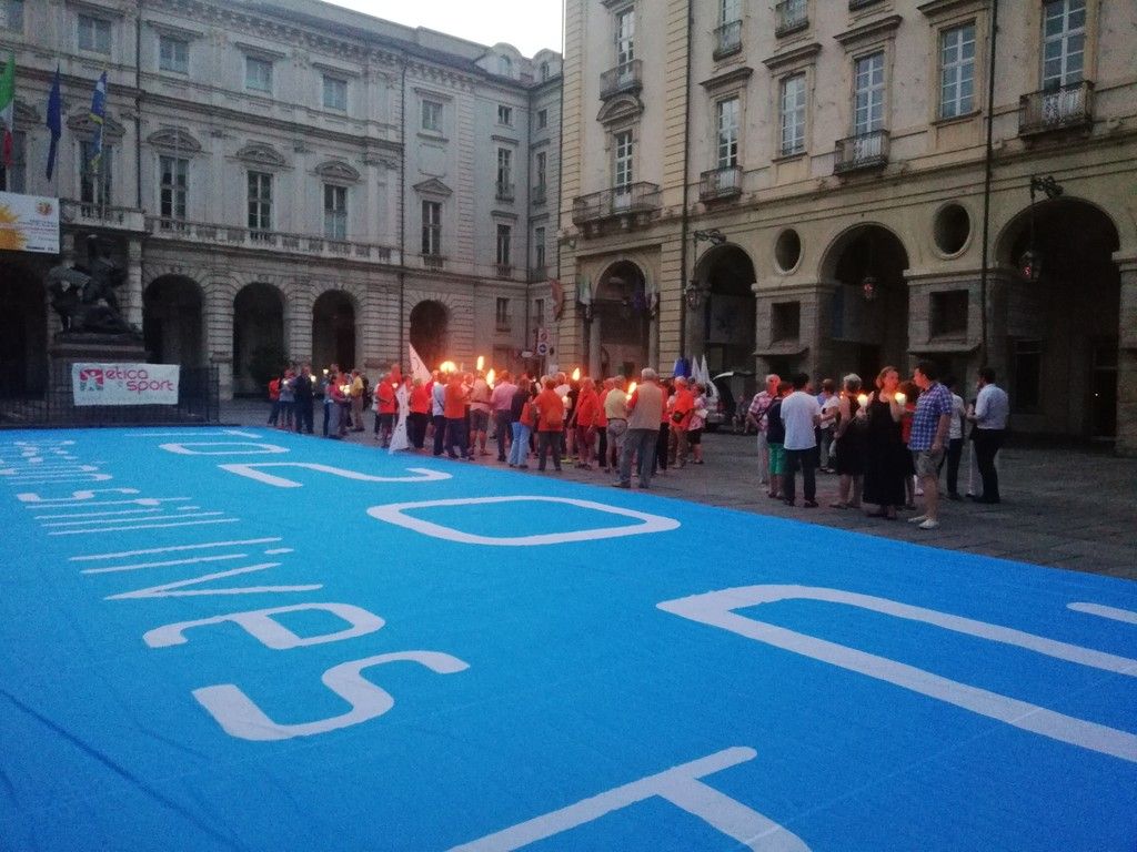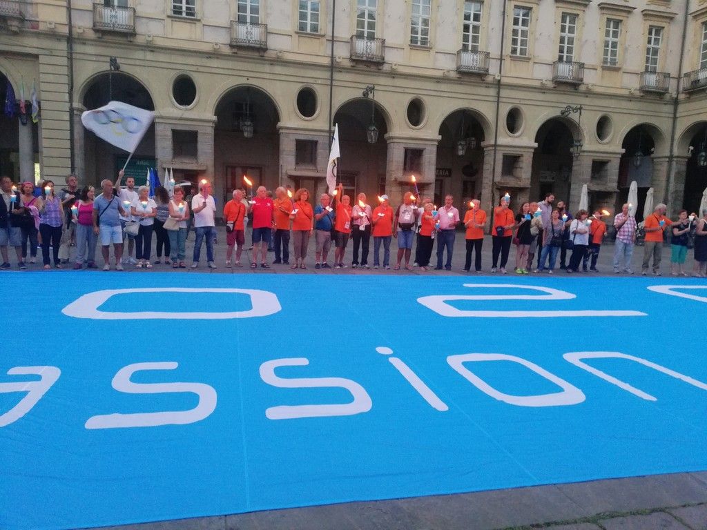 Decine di fiaccole accese per dire sì alla candidatura di Torino alle Olimpiadi 2026.