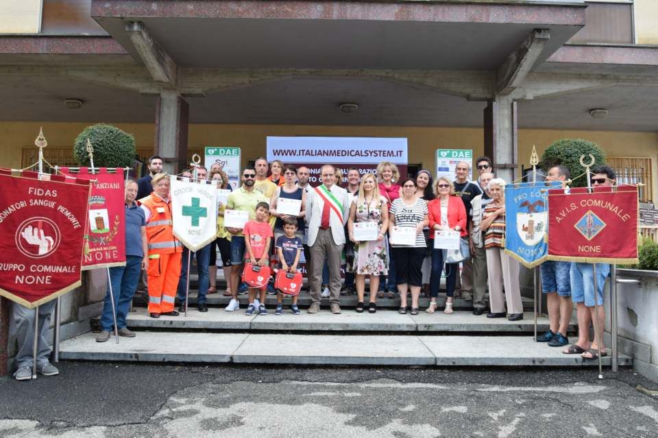 Due nuovi defibrillatori a None. Questa mattina la Italian Medical System ha consegnato la strumentazione salvavita all’amministrazione comunale.