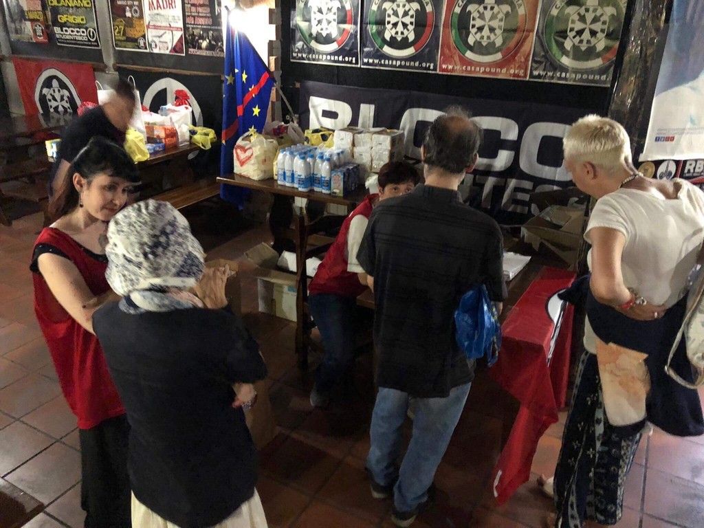 Consegna alimentare svolta da CasaPound presso la sede torinese di via Cellini 22/A: decine di famiglie italiane hanno ricevuto una busta colma di generi alimentari di prima necessità