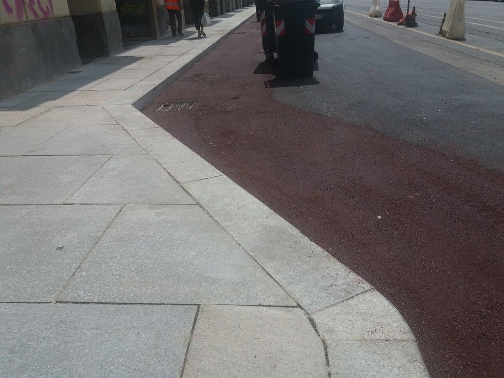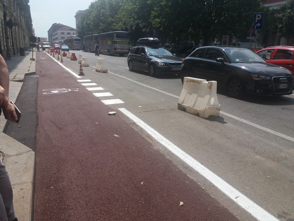 Intanto il marciapiede di via Nizza opposto a Porta Nuova è stato completamente rifatto; accanto corre il primo tratto di pista ciclabile, realizzato con materiale poroso di colore rosso particolarmente visibile e ben distinto dall'asfalto. "Si tratta di una miglioria di cui la società ha voluto farsi carico. A costo zero, quindi, ma decisamente di qualità più elevata e resistente".