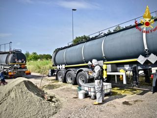 Orbassano, un'autocisterna perde acido in strada: evacuata la zona industriale intorno al "Bingo" (FOTO E VIDEO)