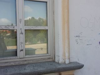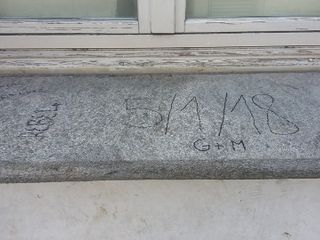 Vandali in azione alla Tesoriera con scritte su muri e finestre