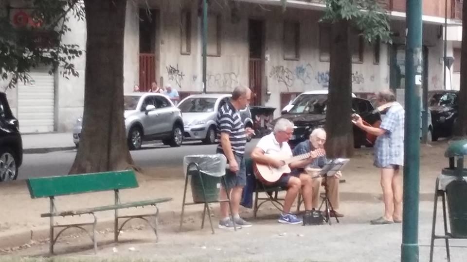 Un gruppo di anziani residenti in zona ha organizzato un concerto improvvisato nell'area pedonale di una delle principali arterie del quartiere
