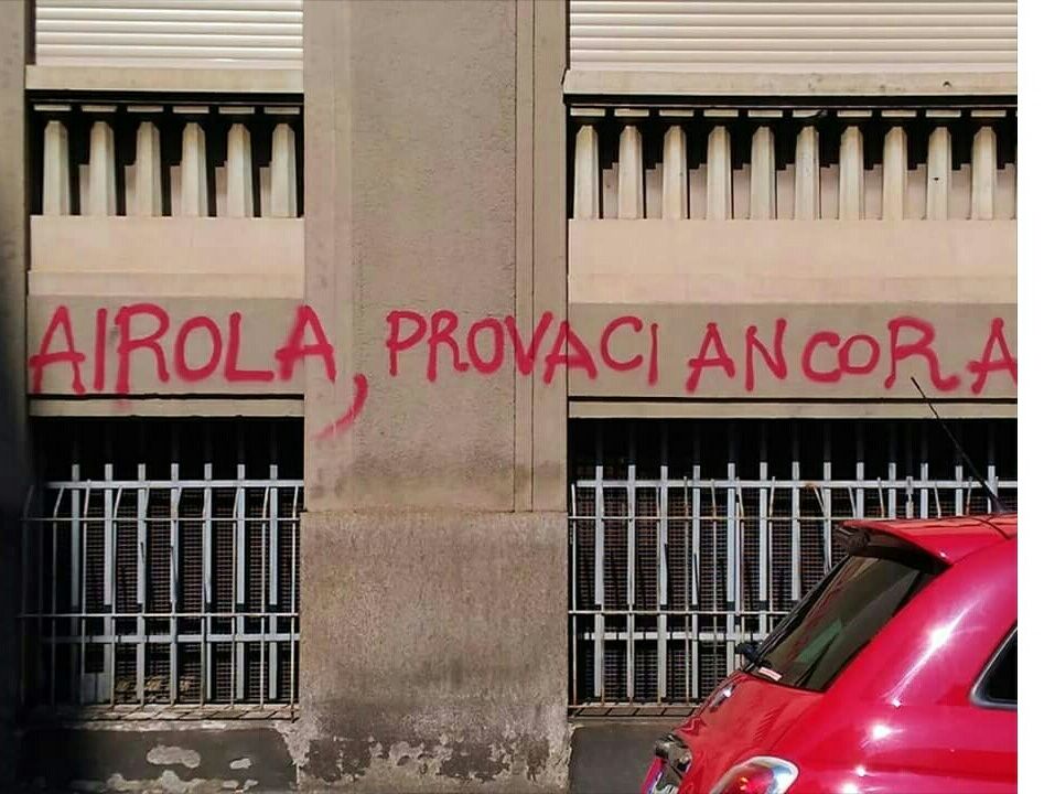"Airola, provaci ancora". La (pessima) scritta è comparsa nei pressi dell'abitazione del senatore Alberto Airola, che abita nel quartiere Aurora, il quale ha cercato di togliersi la vita nel proprio appartamento l'altro ieri.