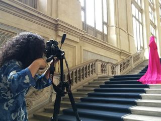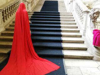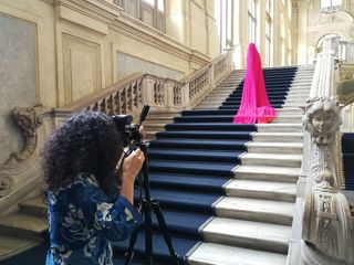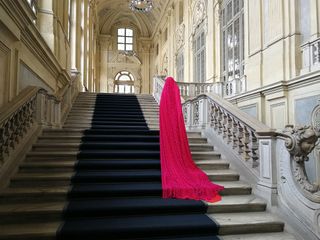 Si muove, Gemma, lungo la scalinata juvarriana di Palazzo Madama. È completamente avvolta da stoffe rosse e rosa, sale lentamente le scale e di tanto in tanto allarga la braccia, si muove adagio, se ne intravede solo la sagoma. Non vede nulla, la modella segue soltanto le indicazioni di Güler Ates, fotografa turca che sta realizzando un progetto fotografico nelle ex dimore sabaude.