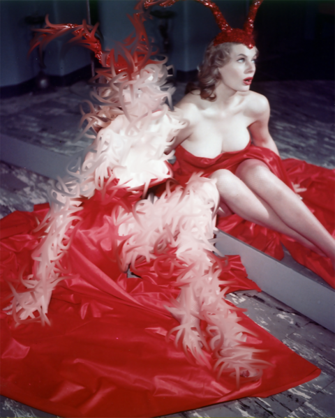 La violenza è diretta scientemente all’icona, indirizzata al volto di figure estremamente riconoscibili, simbolo per eccellenza di un “vintage pop” e di un sistema culturale, il nostro, che ha fatto della memorizzazione visiva, della bulimia d’immagine, il suo tratto distintivo. Ecco che compare Elizabeth Taylor con il suo vestito rosso, la scollatura a cuore, paillettata. Un colpo d’occhio basta, magari il nome non si ricorda immediatamente, ma la foto è ovunque, impossibile non averne almeno vaga memoria. Su Google è onnipresente.