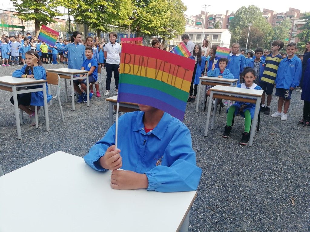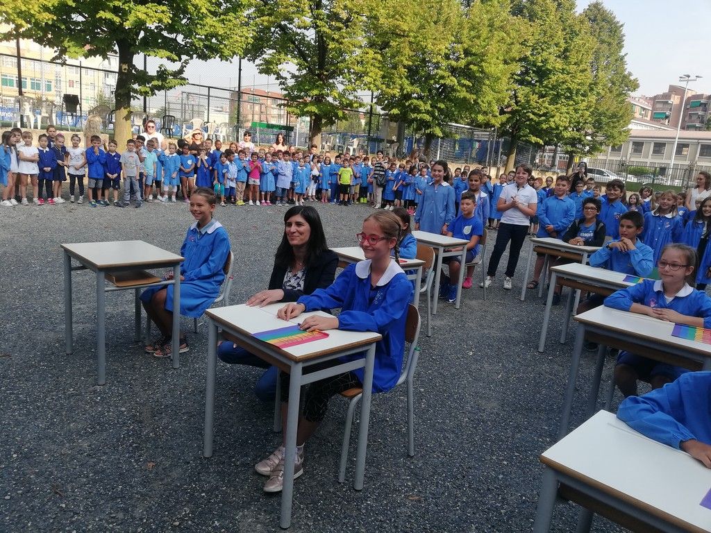 Dopo la secondaria, Appendino ha poi incontrato i bambini della Primaria di via Ventimiglia, che per l'occasione avevano trasformato il cortile in una classe a cielo aperto con banchi e bandierine arcobaleno con su scritto "benvenuto" nelle diverse lingue del mondo. Il sindaco ha invitato gli alunni a non "dimenticarsi mai di giocare. Cercate di divertirvi sempre: la gioia è una delle emozioni più belle".