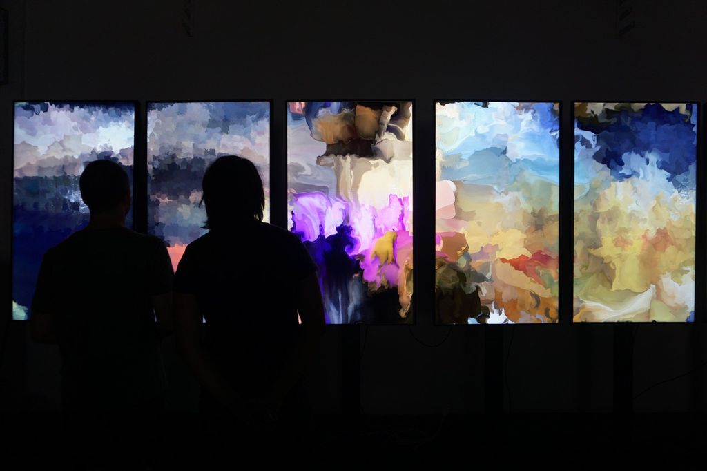 Un’installazione immersiva dove immagine e suono dialogano con il pubblico in maniera visionaria e coinvolgente, un raccoglitore e, al contempo, una vetrina dei materiali ricevuti dal pubblico – filmati in formato verticale standard utilizzato per le dirette Facebook e Instagram –, raccolti via internet su un portale appositamente realizzato, in seguito visivamente trasformati da un processo di elaborazione basato su un algoritmo. Algoritmo che si fonda sulle leggi che regolano il comportamento dei fluidi in moto, capaci di generare una miscelazione di contenuti.
