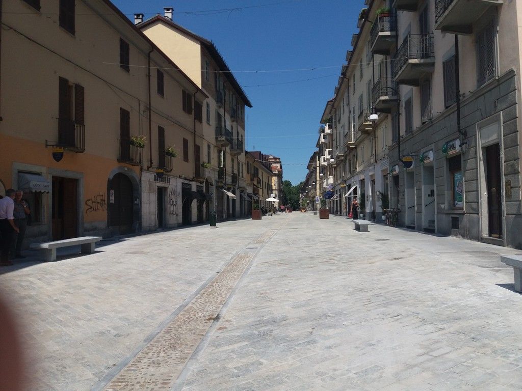 Lastricata in pietra di Luserna, con un cordolo centrale in ciottoli, marciapiedi coerenti con la posa di binderi ed elementi di arredo urbano, la riqualificazione ha puntato a valorizzare la tradizione storica, in una dimensione tuttavia smart.