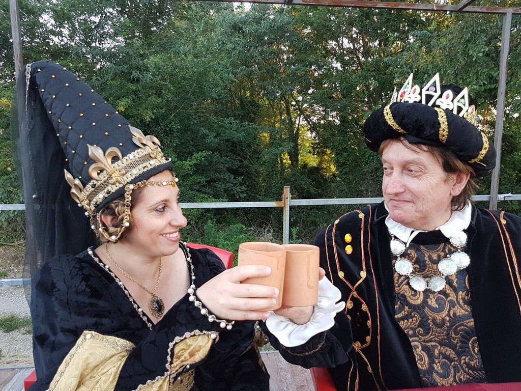 Su una grande scacchiera si muoveranno i pezzi delle due squadre dei vini bianchi e dei vini rossi piemontesi. Ogni pezzo rappresentato da un personaggio in costume è abbinato ad un vino a doc o docg. La squadra dei bianchi vede schierati re Moscato d’Asti e la regina Alta Langa con l’Asti spumante dolce e secco nella posizione delle torri. I rossi hanno la coppia regale classica: Barolo e Barbera d’Asti affiancati dal Grignolino (alfiere) e dal Nizza che si muoverà sulla scacchiera da torre come il Barbaresco. In tutto sono 16 pezzi per squadra.