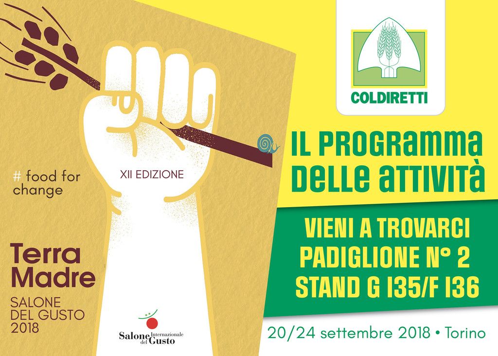 Al via la XII edizione del Salone del Gusto 2018 #foodforchange al Lingotto Fiere di Torino dove Coldiretti sarà presente presso il padiglione 2 area G135/F136.