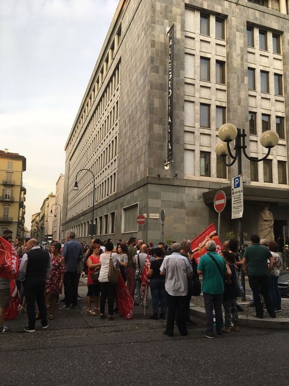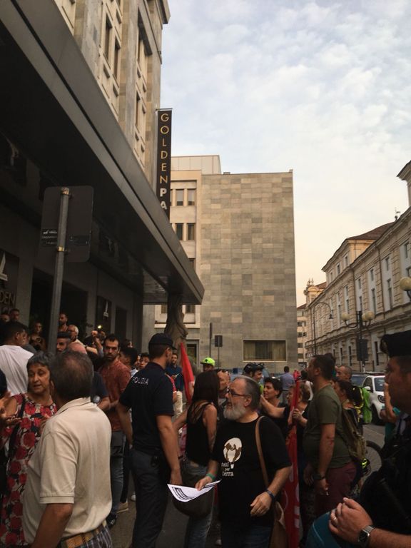 Circa una cinquantina di persone si sono radunate questo pomeriggio davanti al Golden Palace di Torino per chiedere alla proprietà di ritirare il licenziamento di Maura Verra. Un presidio organizzato in concomitanza con l'arrivo del Napoli, che domani sarà impegnato in una partita di campionato contro il Torino.