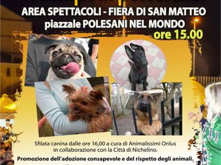 L'area della fiera ospita, oltre alla zona Commerciale e Artigianale, Street Food, Arena Sport Fitness And Dance (a cura dell’ A.S.D. P.S. Puro Stile Italiano). Oggi, sabato 22 settembre, dalle ore 16.30: “4 Zampe in passerella”, sfilata canina a cura dell'Ass. Animalissimi Onlus. Promozione dell'adozione consapevole e del rispetto degli animali. Iscrizioni: animalissimi@gmail.com– scheda d'iscrizione scaricabile sal sito www.comune.nichelino.to.it– Info Loredana 3342480140 – Katia 3343185107 possibilità di iscriversi oggi stesso dalle ore 15 – Quota d'iscrizione € 3.