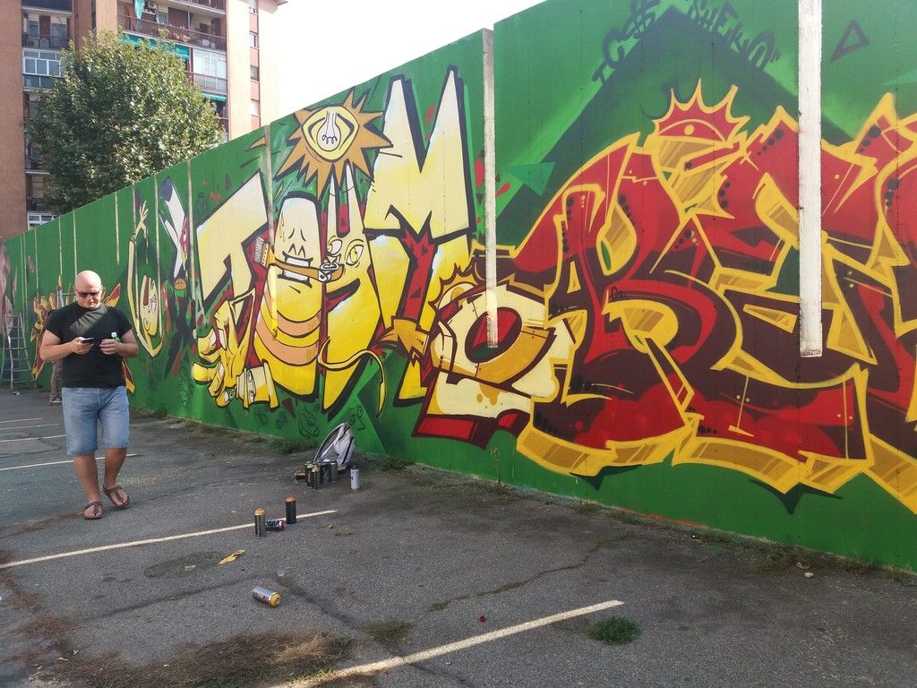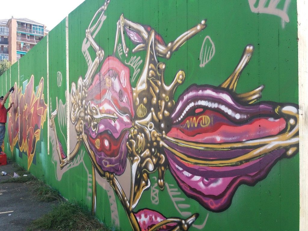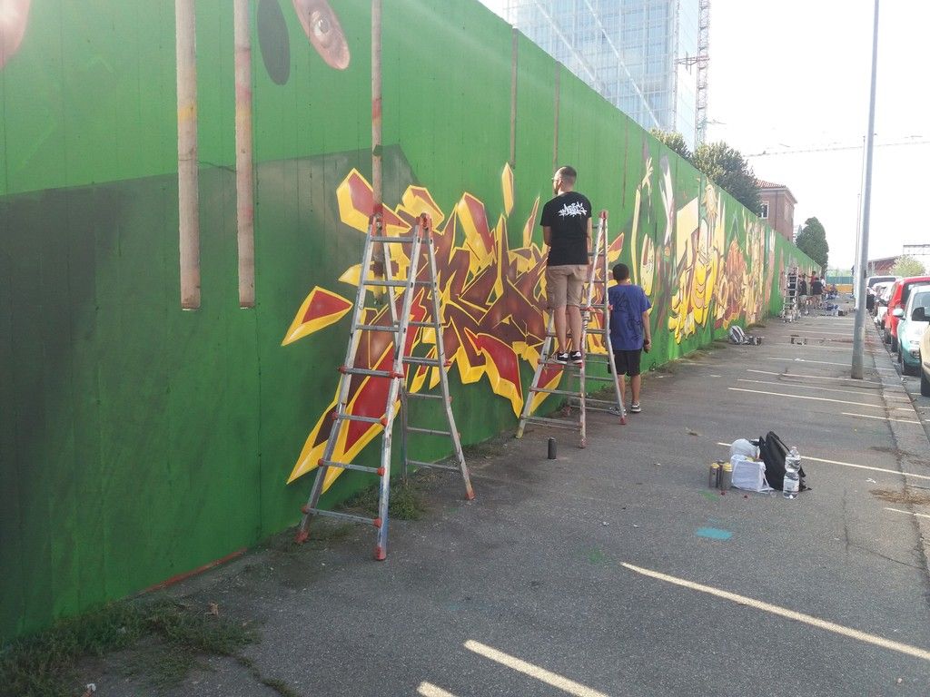 Nel weekend di sabato 22 e domenica 23 settembre, diversi writers torinesi e non solo - alcuni provenienti anche da Milano, Genova e persino dalla profonda Puglia - si sono ritrovati in via Valenza per dare libero sfogo alla propria creatività. La regia era come sempre dell'associazione Monkeys Evolution, che ha lasciato agli artisti piena autonomia nella scelta dei temi per i loro disegni.