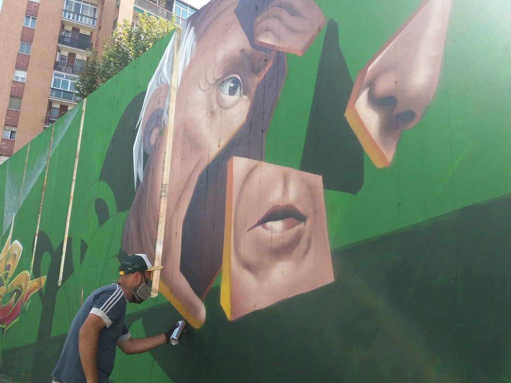 Encs, artista torinese ormai conosciutissimo e frequentatore abituale di jam, si è spinto ancora oltre. "Pablo" è il risultato di uno studio realistico che strizza l'occhio alle scomposizioni del cubismo, con il volto e il busto del maestro spagnolo dissezionati e fluttuanti. Un singolare "guardiano" per il cantiere del grattacielo della Regione Piemonte (ancora) in costruzione.