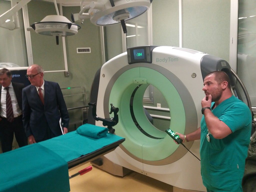 Presentata ufficialmente oggi dal direttore di dipartimento Alessandro Ducati, con Vincenzo Villari e Diego Garbossa, dona a Città della Salute e della Scienza di Torino un apporto rivoluzionario al trattamento delle patologie oncologiche, e non solo. Lo strumento, acquisito grazie al finanziamento di Compagnia di San Paolo, consente ai medici di registrare i dati radiologici in tempo reale, quando il paziente si trova ancora in sala operatoria, fungendo da "direttore" di tutte le altre apparecchiature in azione (dall'endoscopio 3D all'aspiratore a ultrasuoni).