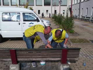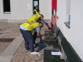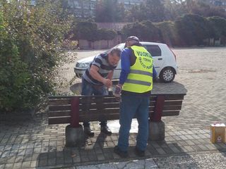 Buona parte delle panchine nel cortile interno alla Cascina Giajone, in via Guido Reni, è stata riverniciata questa mattina grazie al lavoro dei volontari di Torino Spazio Pubblico. Ad aiutarli, anche il vicepresidente della Circoscrizione 2 Alessandro Nucera e il consigliere Franco Protano.