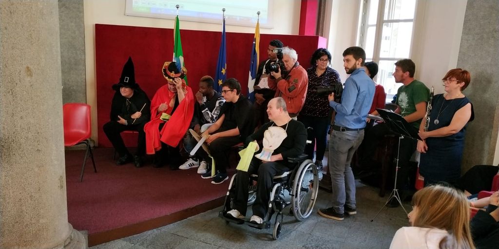 Sul palco 15 ragazzi disabili che frequentano il centro diurno Rosaspina cooperativa sociale Alice di Sommariva del Bosco, in provincia di Cuneo. Un debutto speciale per il gruppo, che poi sarà in tour nelle scuole della Granda, a cui ha assistito anche il sindaco Chiara Appendino.