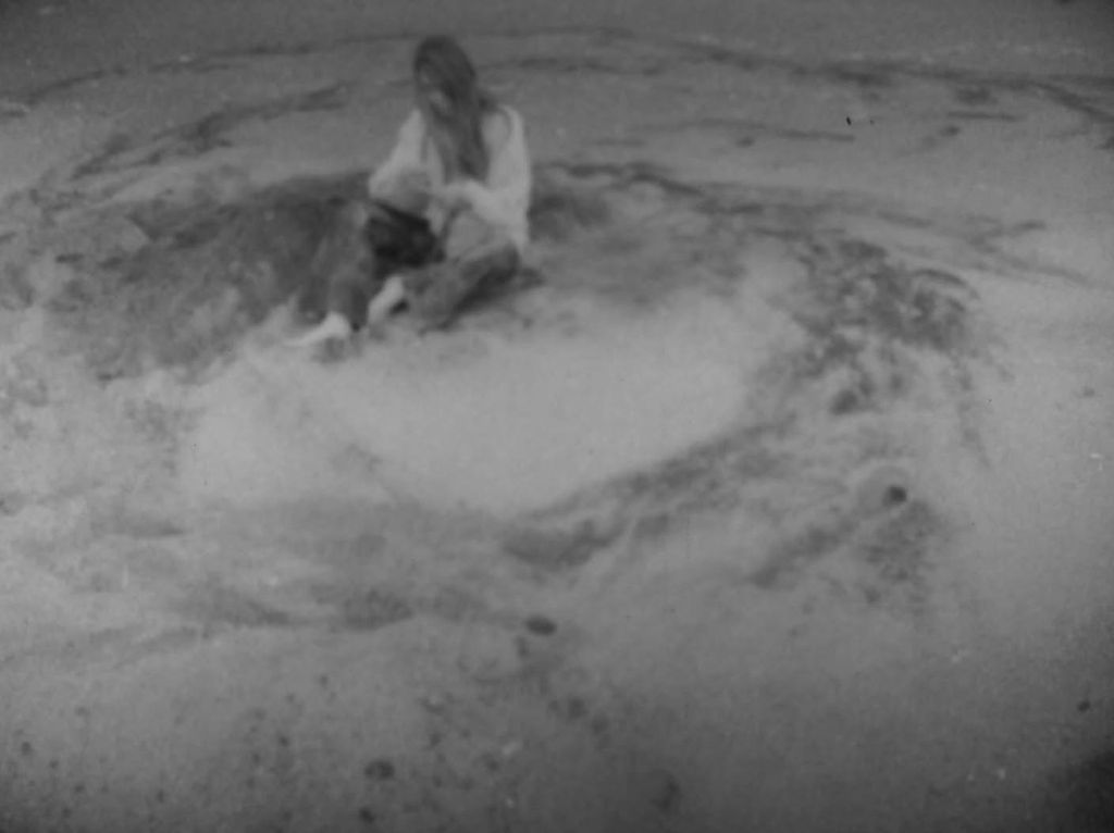 The Measuring of Time del 1969, è un film sorprendente per la sapienza registica e per l’anticipazione di temi e scelte linguistiche che saranno esplorate, negli anni immediatamente successivi, da artisti come Robert Smithson e Dan Graham. Il film ritrae l’artista seduta su una spiaggia mentre conta sul palmo della mano granelli di sabbia, come a voler contare l’infinità del tempo. La cinepresa si muove attorno a lei con un moto a spirale che si allontana e si avvicina al suo corpo quale centro della percezione temporale, quasi a renderlo una figura femminile mitica, capace di attivare e interrompere il flusso dei giorni, chiudendo nel palmo il fluire dei granelli di sabbia o disperdendoli al vento.