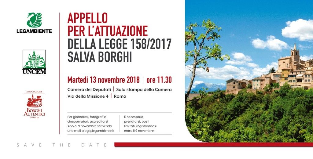 La cosiddetta "salva borghi" è il primo articolato nella storia della Repubblica che mette al centro i centri più piccoli, anima e tessuto connettivo del Paese. La mobilitazione, con la sottoscrizione del documento, nasce da un'iniziativa congiunta di Legambiente, Borghi Autentici d'Italia e Uncem. Verrà presentata nella mattinata del 13 novembre alla Camera dei Deputati.