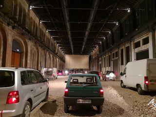 Il Binario 1 è reso irriconoscibile, generando un effetto straniante in cui il visitatore è chiamato a trovare il suo percorso personale, ad esplorare liberamente gli elementi presenti per costruire la propria narrazione. L'ex spazio industriale è stato convertito in una sorta di parcheggio sterrato, su cui stazionano una ventina di automobili parcheggiate, coperte di polvere e in stato di abbandono. Uno scenario post-apocalottico, visibile attraverso una grande vetrata trasparente all'ingresso, contro cui sembra premere l'ammasso di detriti terroso frutto di demolizioni che fa da pavimento.