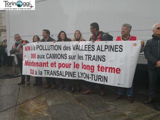 Accanto alle bandiere del sì alla Torino-Lione, si vedono gli striscioni dei contrari all'ampliamento della ZTL e quelle pro-Olimpiadi 2026, ma anche categorie economiche, sindacati ed esponenti politici