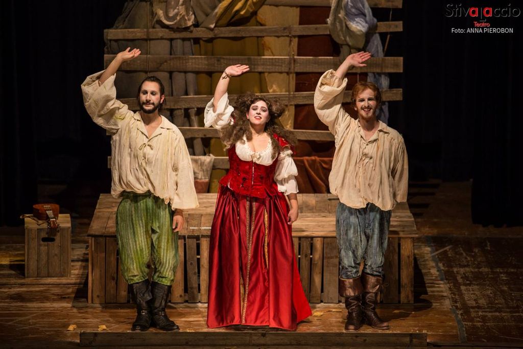 Si assiste dunque ad una “prova aperta”, dove la celeberrima storia del Bardo prende forma e si deforma nel mescolarsi di trame, dialetti, canti, improvvisazioni, suoni, duelli e pantomime.