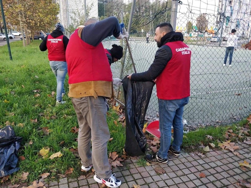 Questo pomeriggio una decina di militanti di CasaPound si sono dedicati alla pulizia del campetto di fronte al Parco Colonnetti di via Artom, a Mirafiori sud.