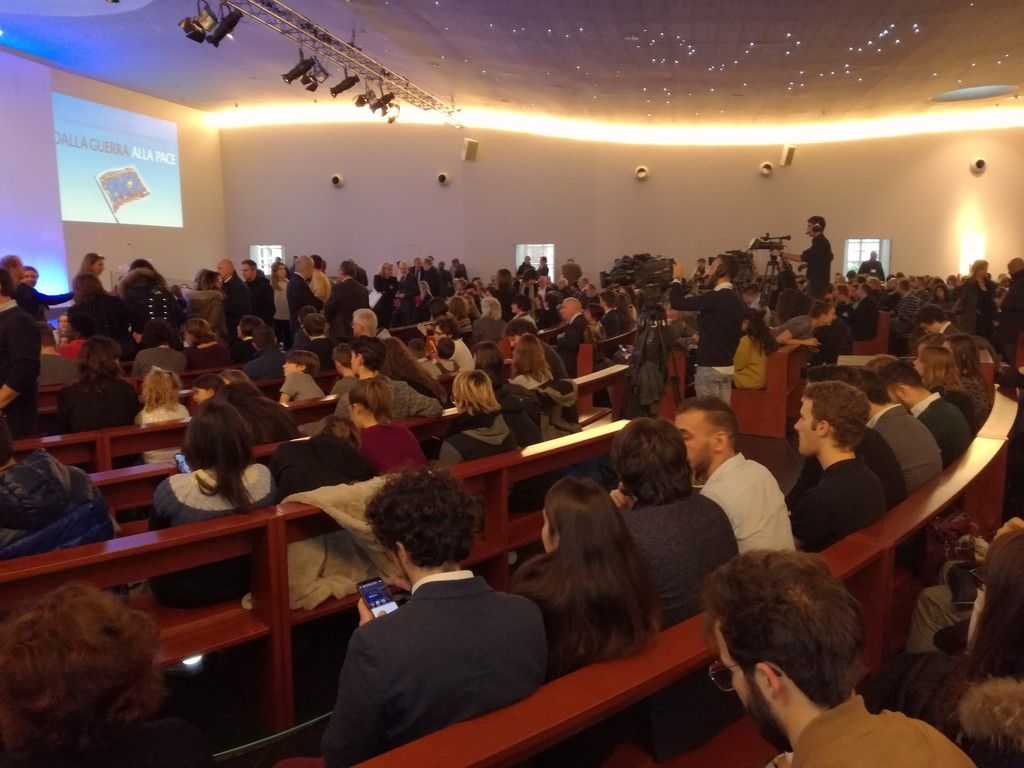 Parlando di guerra è impossibile poi non parlare di Europa: "È bastata visione e buona volontà. Il che dimostra che è possibile - dice Mattarella - E anche se qualcuno di lamenta dell'Europa, anche se può avere alcune lacune, è un'esperienza che viene guardata con interesse, per esempio in Africa o in America del Sud o nel Sud Est Asiatico. Il modello di convivenza invece che di contrasto è da esempio per tanti altri".