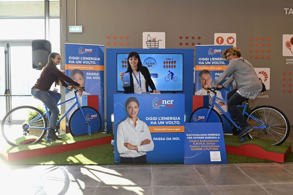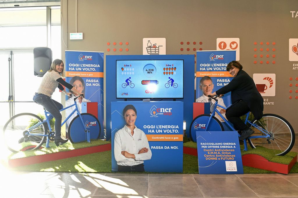 L’energia prodotta verrà, infatti, donata ai centri antiviolenza E.M.M.A. Onlus “Donne e Futuro” da anni impegnati ad accogliere nelle case rifugio donne, con i loro figli, che per ragioni di sicurezza devono allontanarsi dalle loro abitazioni. Tutte le persone che vorranno potranno aderire liberamente alla campagna, partecipando a una “staffetta della solidarietà” per creare energia pedalando su due bicigeneratori, in grado di convertire la potenza cinetica sprigionata in energia elettrica.