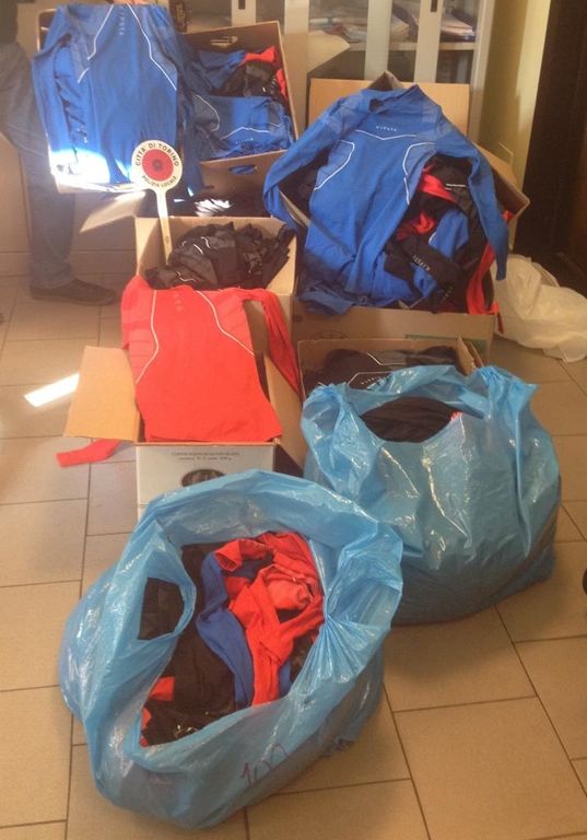 Centinaia i giubbotti, le giacche, i maglioni e le scarpe poste sotto sequestro. Denunciati quattro senegalesi
