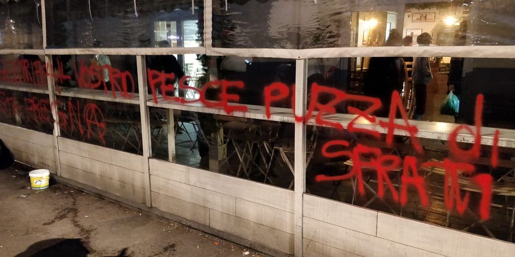 Corteo anarchico verso Porta Palazzo: "Governo giallo-verde assassino". Imbrattati alcuni muri e una filiale di Intesa Sanpaolo (FOTO e VIDEO)