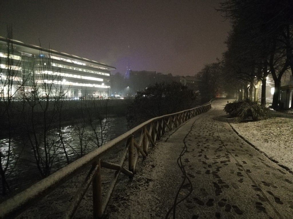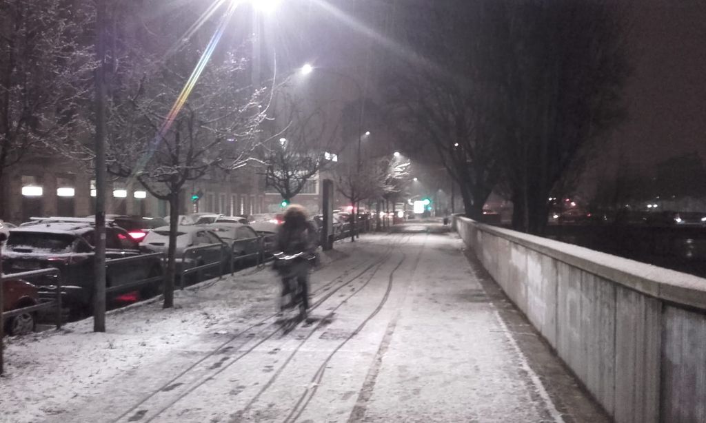 Inizialmente la neve era mista a pioggia, dalle 16 la nevicata è più intensa e così sarà almeno fino a mezzanotte. Secondo le previsioni, però, oggi è e resterà l'unico giorno di neve in città almeno fino a dopo Natale.