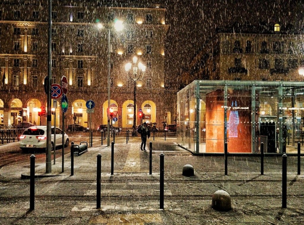 La prima neve scende su Torino. Qualche fiocco ha incominciato a vedersi intorno alle 15.30 in centro, poi man mano nei quartieri più periferici.